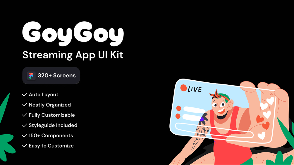 Design next-gen live streaming apps faster with GoyGoy Streaming – Dark Mode UI Kit, a premium Figma design system crafted for modern streaming platforms.