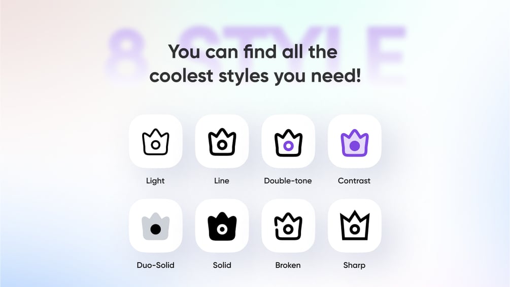 ✅ 8 Styles (Light, Line, Double-tone, Contrast, Duo-Solid, Broken, Solid and Sharp)